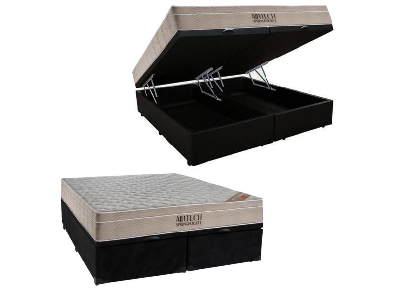 Cama Box Baú King Suede Bipartido + Colchão Ortobom Airtech Molas Ensacadas 65x193x203 Preto