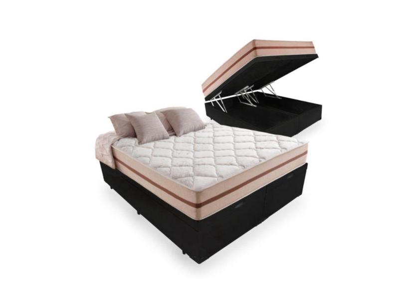 O menor preço encontrado no Brasil para Cama Box Baú King Tecido Sintético Preto com Colchão Pillow Angel - Bello Box - Molas Ensacadas atualmente é R$ 1.991,17.