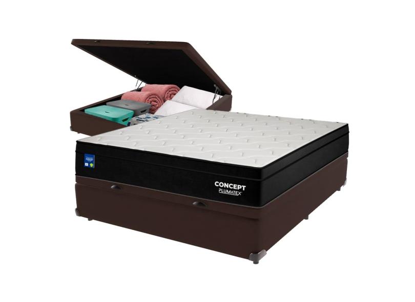 O menor preço encontrado no Brasil para Cama Box Baú Marrom e Colchão Casal Concept Molas Ensacadas Plumatex atualmente é R$ 1.724,79.