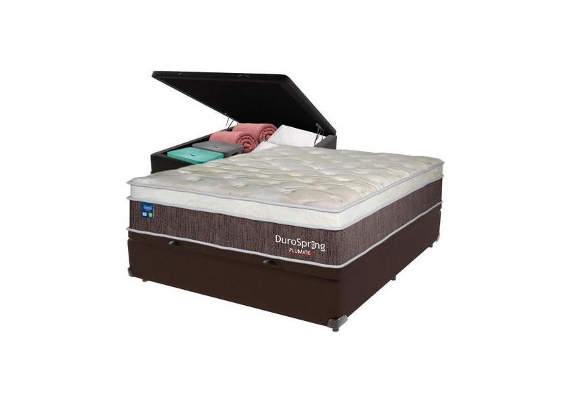 Cama Box Baú Marrom E Colchão Casal Duro Spring Molas Superlastic Plum