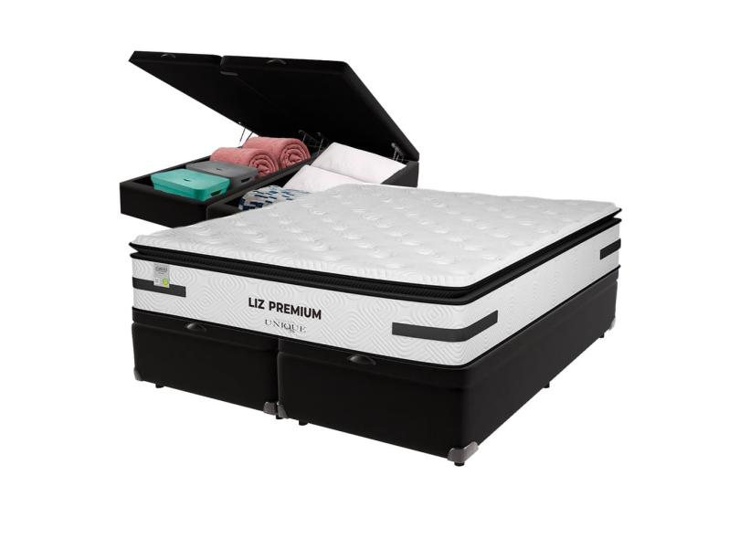 Cama Box Baú Preto e Colchão King Liz Premium Molas Ensacadas Unique