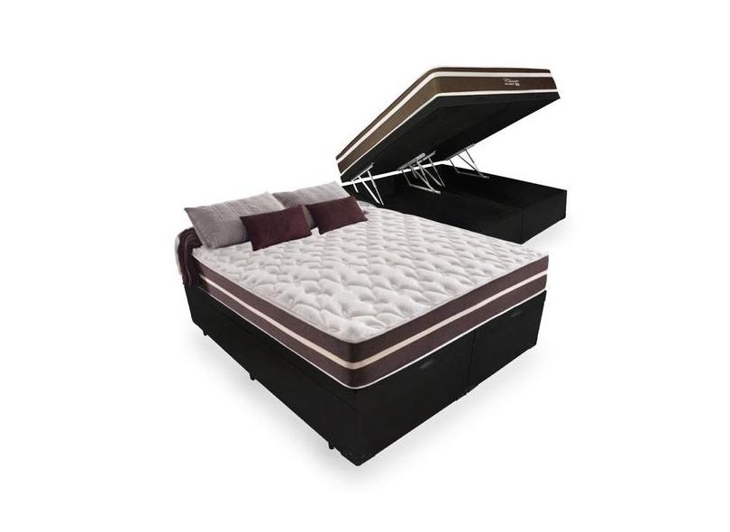 Cama Box Baú Queen 158 Tecido Sintético Preto com Colchão Little Angel - Bello Box - Mola Superlastic 62x158x198cm