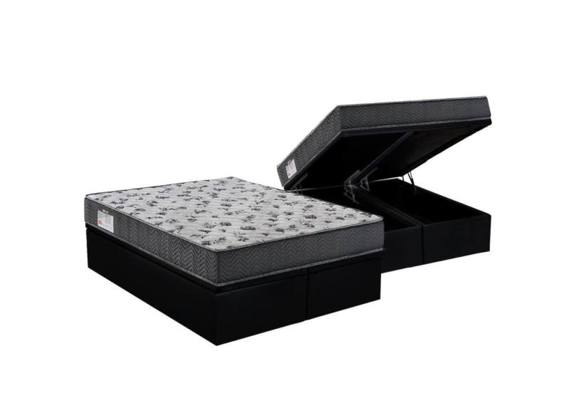 Cama Box Baú Queen: Colchão Anatômico Ortobom D33 / EP ISO 100 Ultra Firme + Base CRC Suede Black(158x198)