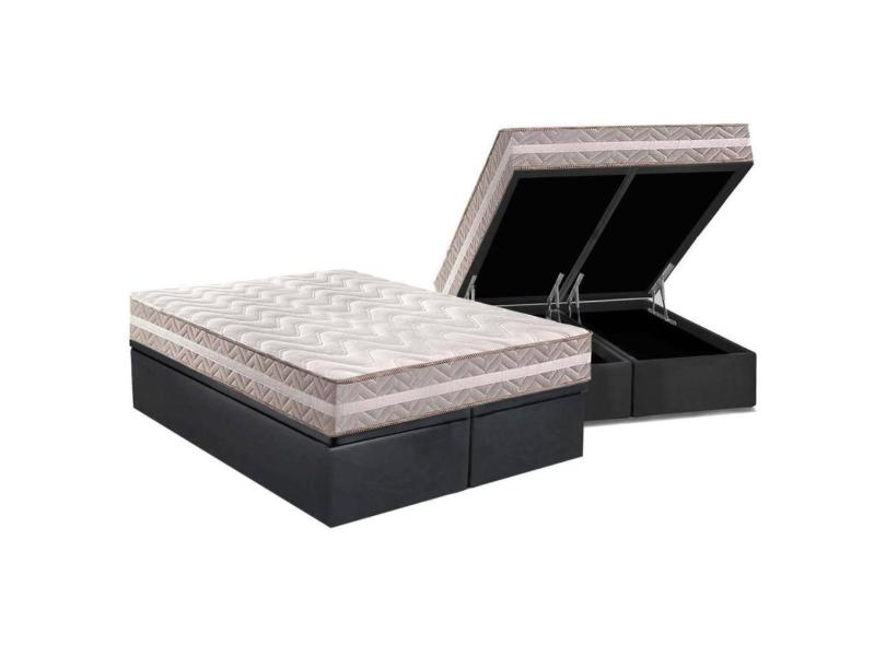 Cama Box Baú Queen: Colchão Anatômico Paropas D33 / AG65 Confort + Base CRC Suede Gray(158x198)