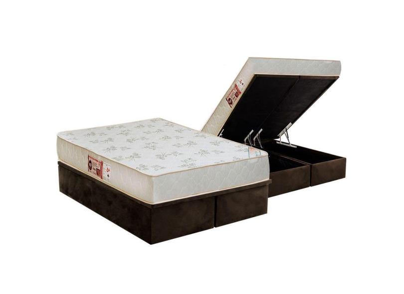 Cama Box Baú Queen: Colchão Espuma D33 Castor Sleep Max Relax + Base Crc Suede Brown(158X198)
