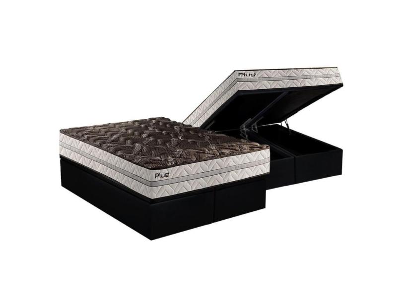 Cama Box Baú Queen: Colchão Espuma D33 Paropas Pasquale Plus Euro Pillow + Base CRC Suede Black(158x198)