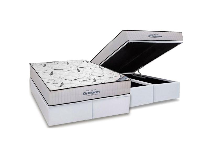 Cama Box Baú Queen: Colchão Espuma D45 Ortobom Hight Foam hr + Base crc Courano White(158x198)