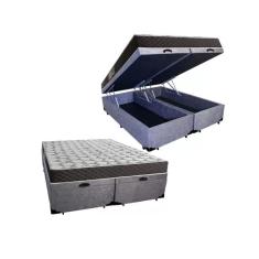 O menor preço encontrado no Brasil para Cama Box Baú Queen Colchão Mola Ensacada Belos Sonhos + Box Suede 67x158x198 Cinza atualmente é R$ 2.150,00.