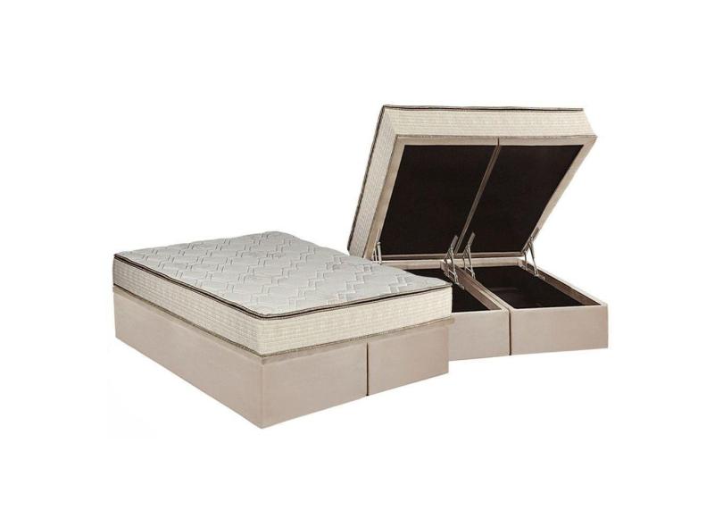Cama Box Baú Queen: Colchão Molas Bonnel Luckspuma Montreal Spring + Base Crc Suede Clean(158X198)