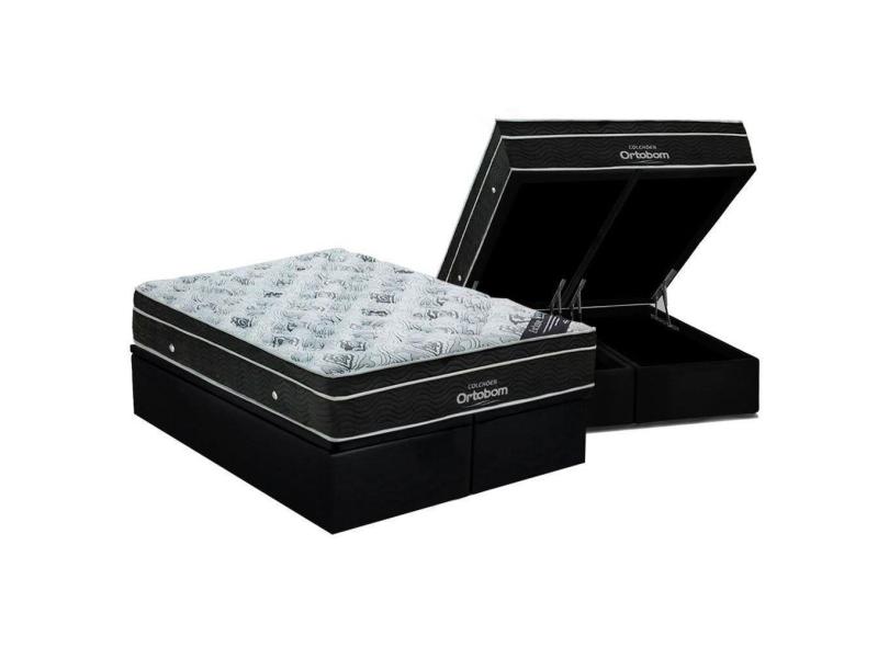 Cama Box Baú Queen: Colchão Molas Bonnel Ortobom Nanolastic Light + Base Crc Courano Black(158X198)