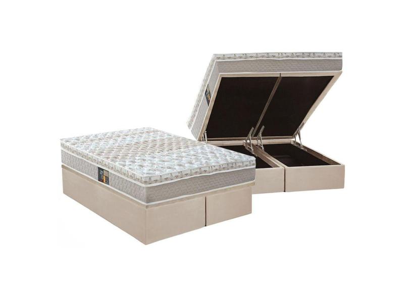 Cama Box Bau Queen Colchao Molas Castor Pocket Class Base Crc Suede Clean 158X198