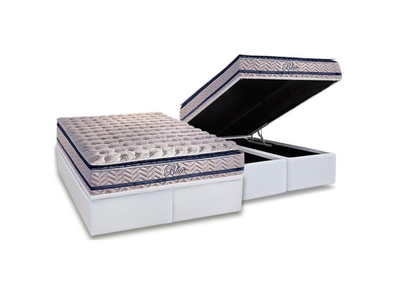 Cama Box Baú Queen: Colchão Molas MasterPocket Ensacadas Paropas Blue + Base crc Courano White(158x198)