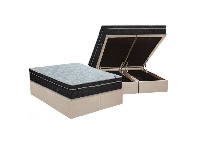 Cama Box Baú Queen: Colchão Molas Ortobom Nanolastic Light + Base CRC Suede Clean(158x198)