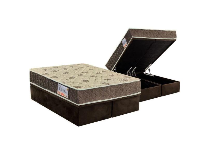 Cama Box Baú Queen: Colchão Ortopédico Orthoflex D33 / EP Matera + Base CRC Suede Brown(158x198)