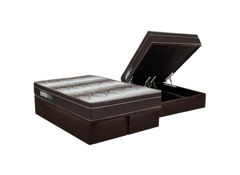 Cama Box Baú Queen: Colchão Ortopédico Ortobom Light + Base CRC Courano Brown(158x198)