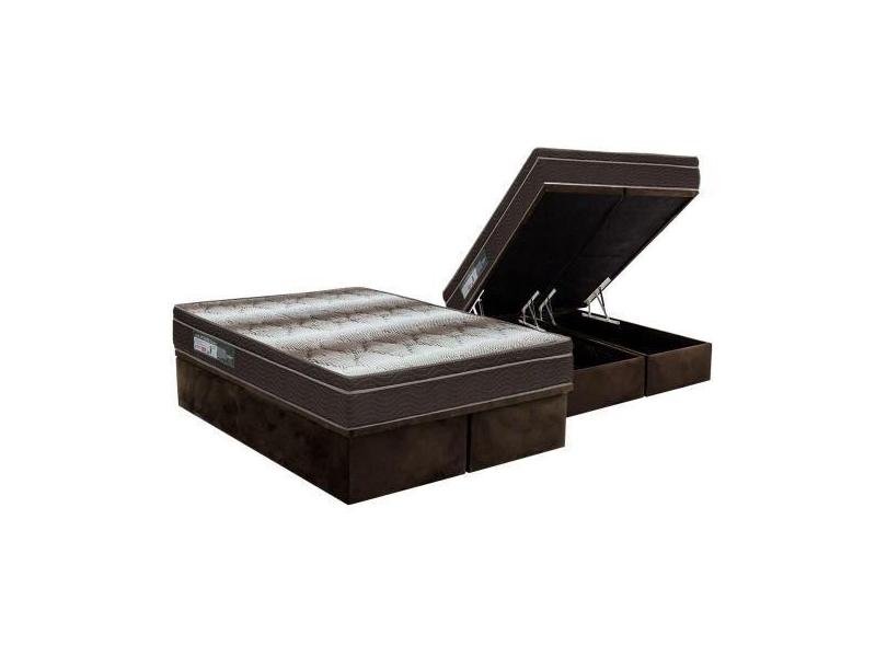 Cama Box Baú Queen: Colchão Ortopédico Ortobom Light + Base Crc Sued