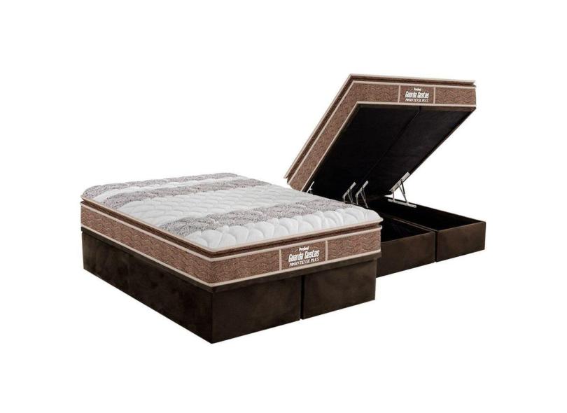 Cama Box Baú Queen: Colchão Ortopédico Probel D33 / EP Guarda Costas PróIntense Plus Pillow Top + Base CRC Suede Brown(158x198)