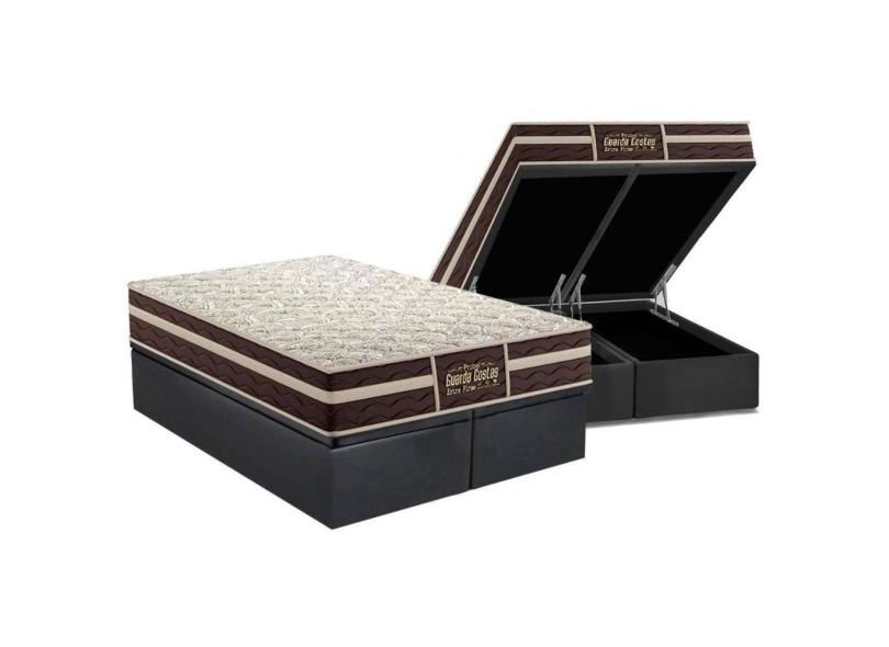 Cama Box Baú Queen: Colchão Ortopédico Probel Guarda Costas Extra Firme + Base CRC Suede Gray(158x198)