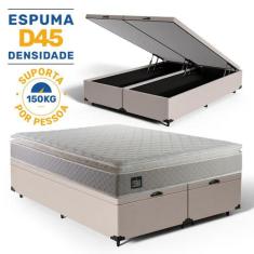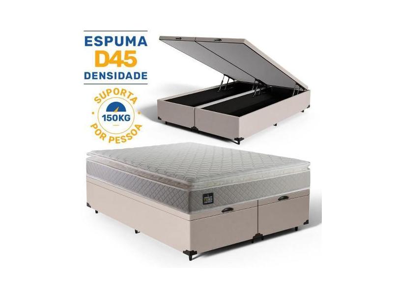 Cama Box Baú Queen + Colchão Strong D45 One Face Bege 158X198x66cm - S