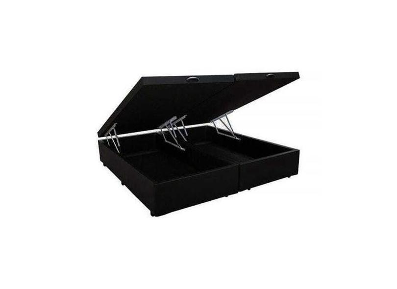 Cama Box Baú Queen Platinum Preto Bipartido Com Pistão A Gás - 158x198x41
