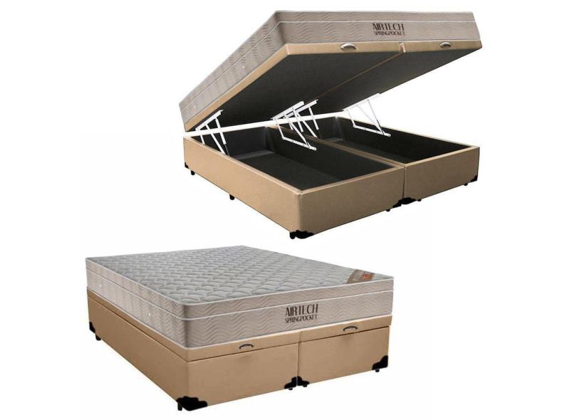 Cama Box Baú Queen Sintético Bipartido + Colchão Ortobom Airtech Molas Ensacadas 65x158x198 Cor:bege
