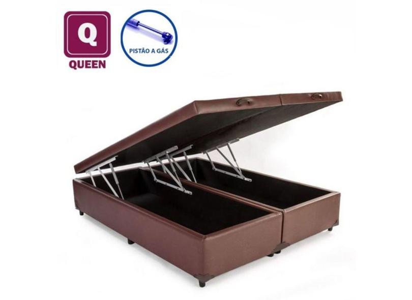 Cama Box Baú Queen size Bi partida em Corino marrom com Pistão a gás - 158x198x27