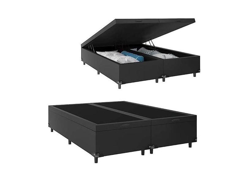 Cama Box Baú Queen Size Bipartido Material Sintético Preto Com Pistões