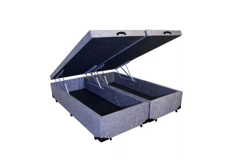 Cama Box Baú Queen Size Bipartido Suede Cinza - Real Comfort Estofado