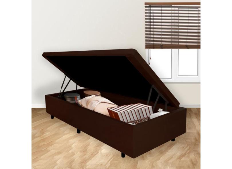 Cama Box Baú Solteirão 96x203x42cm Suede Marrom Com Pistão A Gás