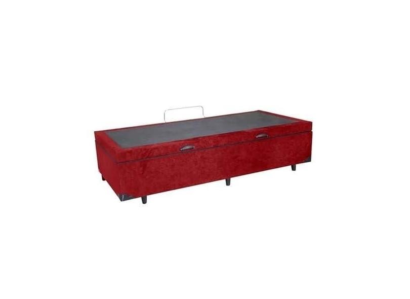 Cama Box Baú Solteirao King Suede Vermelho com 203x96x42cm