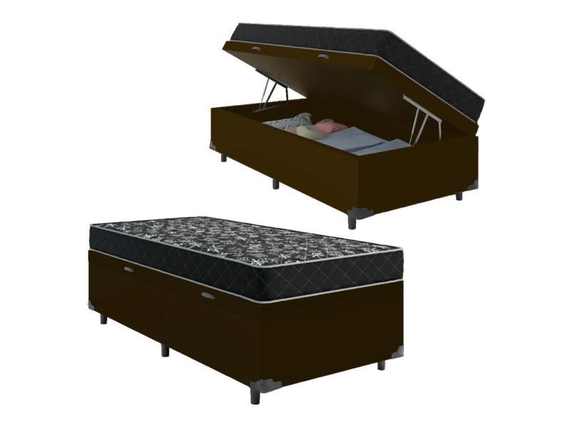 O menor preço encontrado no Brasil para Cama Box Baú Solteiro 88 Sintético Marrom com Colchão de Espuma D20 - Tampo Preto 12cm atualmente é R$ 662,15.