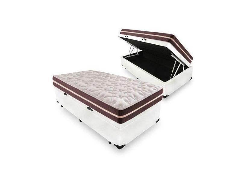 Cama Box Baú Solteiro 88 Tecido Sintético Branco Com Colchão Little An