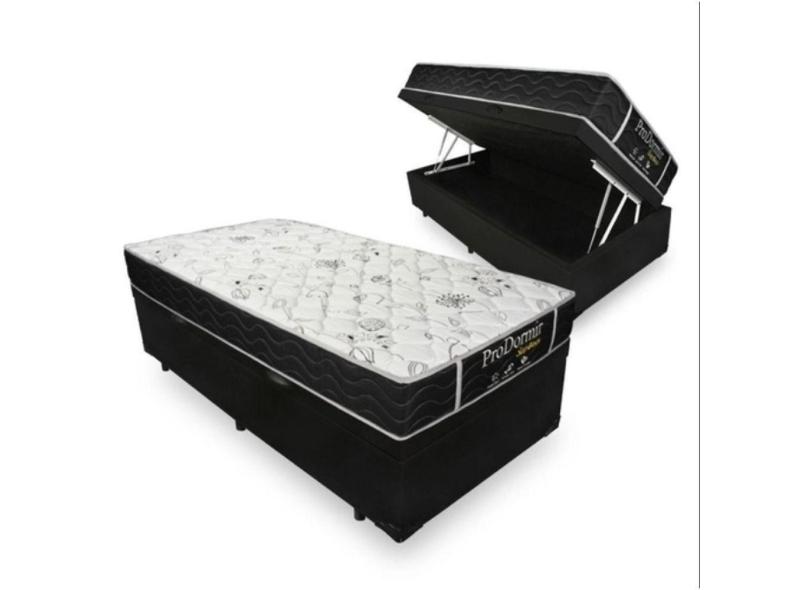Cama Box Baú Solteiro 88 Tecido Sintético Preto com Colchão De Molas - Probel Sleep Black
