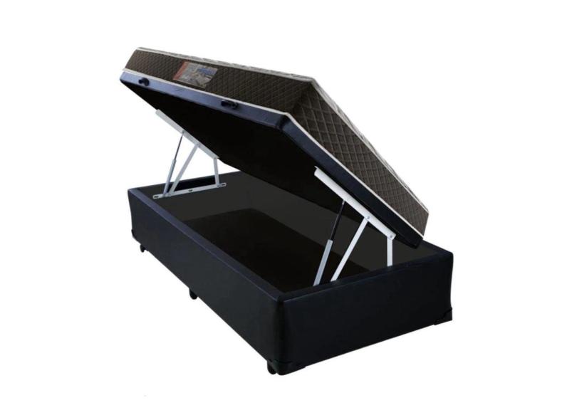 Cama Box Baú Solteiro 88 Tecido Sintético Preto com Colchão Molas Ensacadas 61x88x188