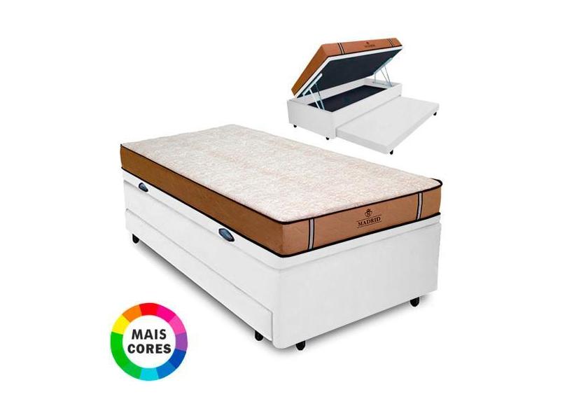 Cama Box Baú Solteiro Auxiliar Bicama 3 Em 1 + Colchão Madrid D33 Mola