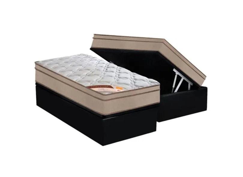 O menor preço encontrado no Brasil para Cama Box Baú Solteiro Blindada + Colchão Castor Molas Revolution Tecnopedic 088x188x72 atualmente é R$ 1.641,99.