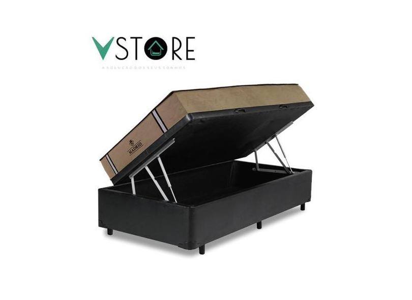 Cama Box Baú Solteiro Bravus + Colchão Madrid D33 Molas Ensacadas 78X1