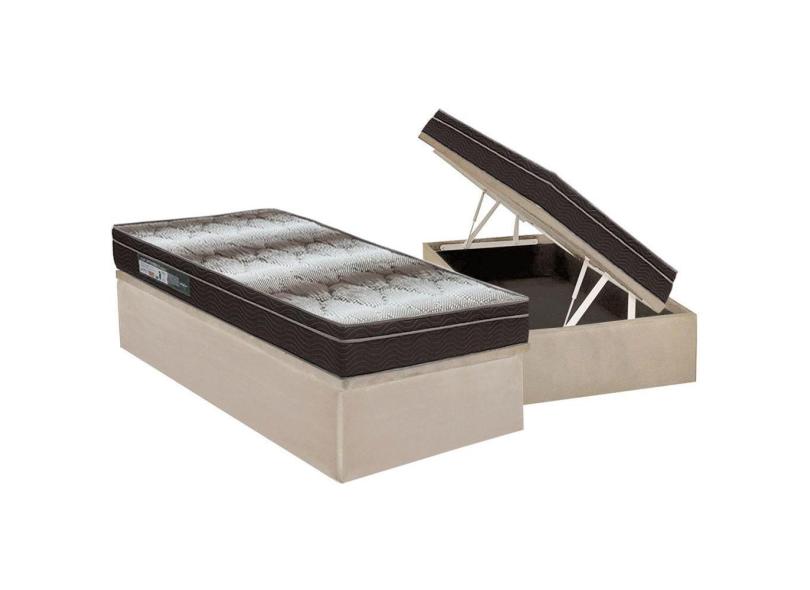Cama Box Baú Solteiro: Colchão Anatômico Ortobom Ortopédico Light + Base crc Suede Clean(88x188)
