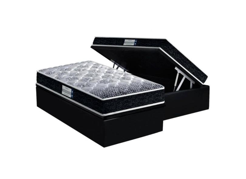 Cama Box Baú Solteiro: Colchão Anatômico Probel D33/EP Firmepedic ProDormir Advanced Tech1500 Double Face + Base CRC Suede Black(88x188)