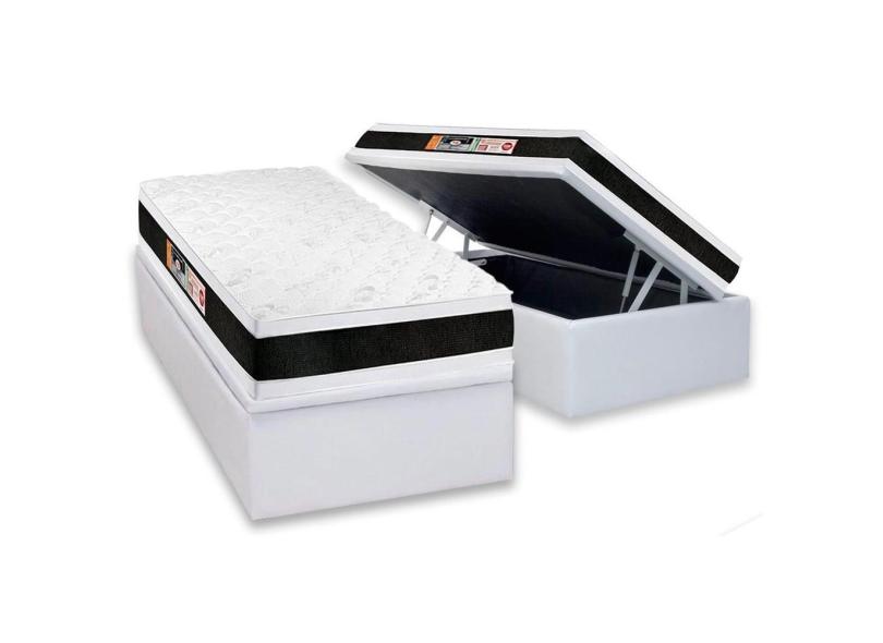 Cama Box Baú Solteiro: Colchão Espuma Castor D45 Black e White Air Double Face + Base crc Courano White(88x188)