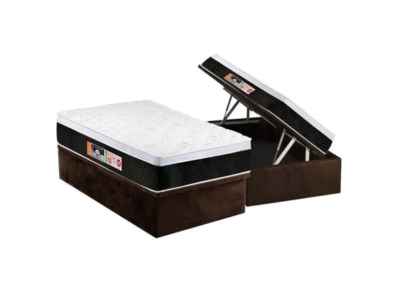 Cama Box Baú Solteiro: Colchão Espuma Castor D45 Black e White Air Euro Pillow + Base CRC Suede Brown(88x188)