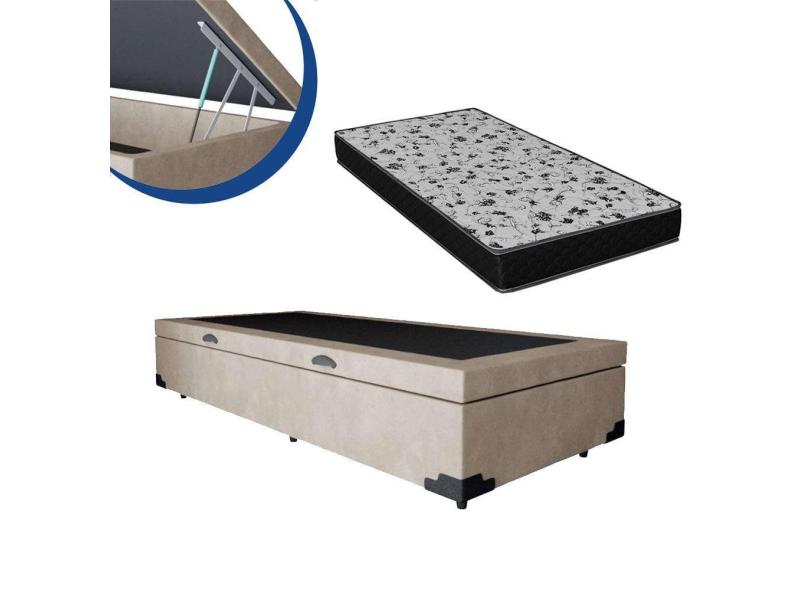 Cama Box Baú Solteiro Colchão Espuma D33 + Box Bege 53x78x188