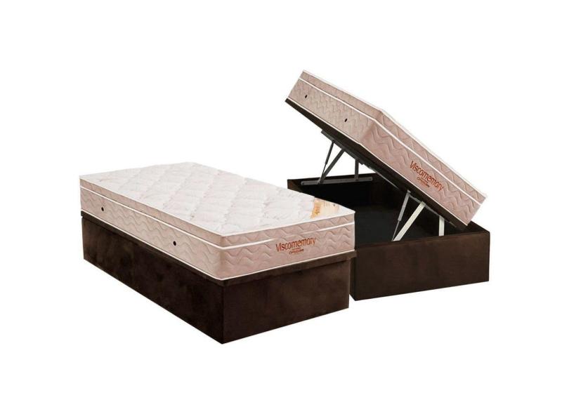 Cama Box Baú Solteiro: Colchão Espuma D33 Ortobom Viscoelástico Apollo Viscomemory + Base CRC Suede Brown(88x188)