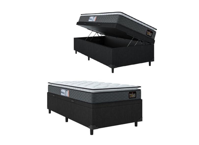 Cama Box Baú Solteiro Colchão Espuma D33 Pillow Top Millenium 88x188x60cm Cinza/Preto Hellen - Suporta até 120kg por Pessoa
