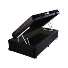 Cama Box Baú Solteiro Colchão Espuma D45 Bordado + Box Sintético Preto