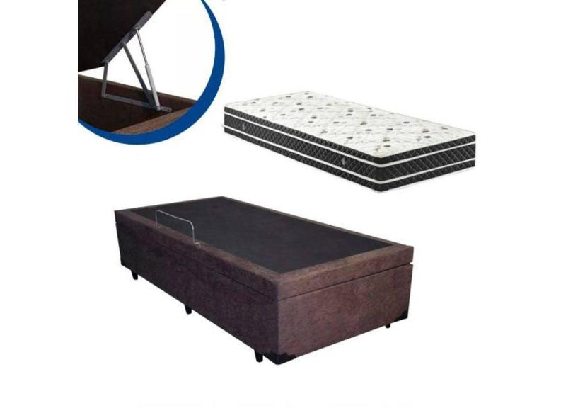 O menor preço encontrado no Brasil para Cama Box Baú Solteiro Colchão Espuma D45 Bordado + Box Suede Marrom 61x88x188 atualmente é R$ 914,32.