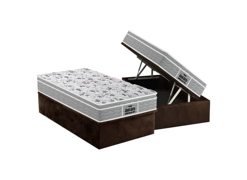 Cama Box Baú Solteiro: Colchão Espuma D45 Probel / ep Guarda Costas PróExtreme Plus + Base crc Suede Brown(88x188)