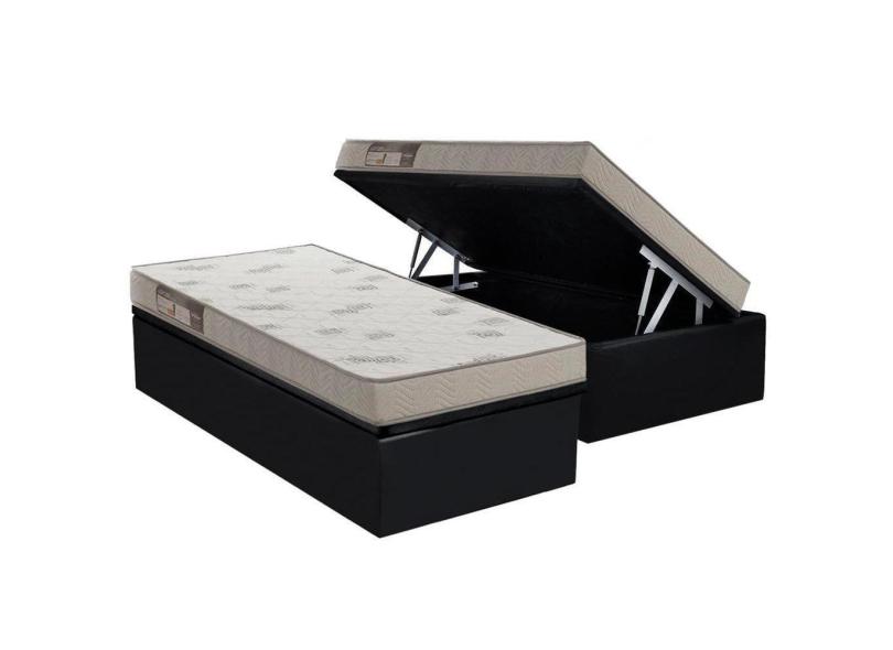 Cama Box Baú Solteiro: Colchão Espuma Ortobom D23 Light Saúde + Base Crc Courano Black(88x188)