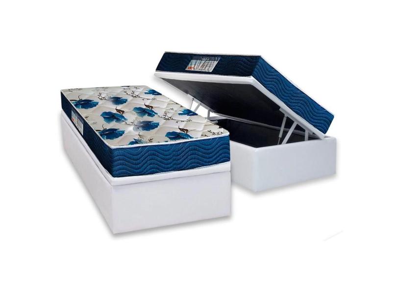 Cama Box Baú Solteiro: Colchão Espuma Ortobom D28 / ep iso 60 Super Firme + Base crc Courano White(88x188)