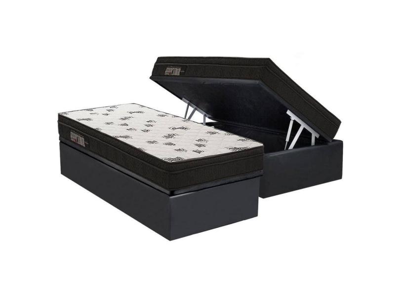 Cama Box Baú Solteiro: Colchão Espuma Ortobom D45 Light Saúde OrtoPillow + Base CRC Suede Gray(88x188)